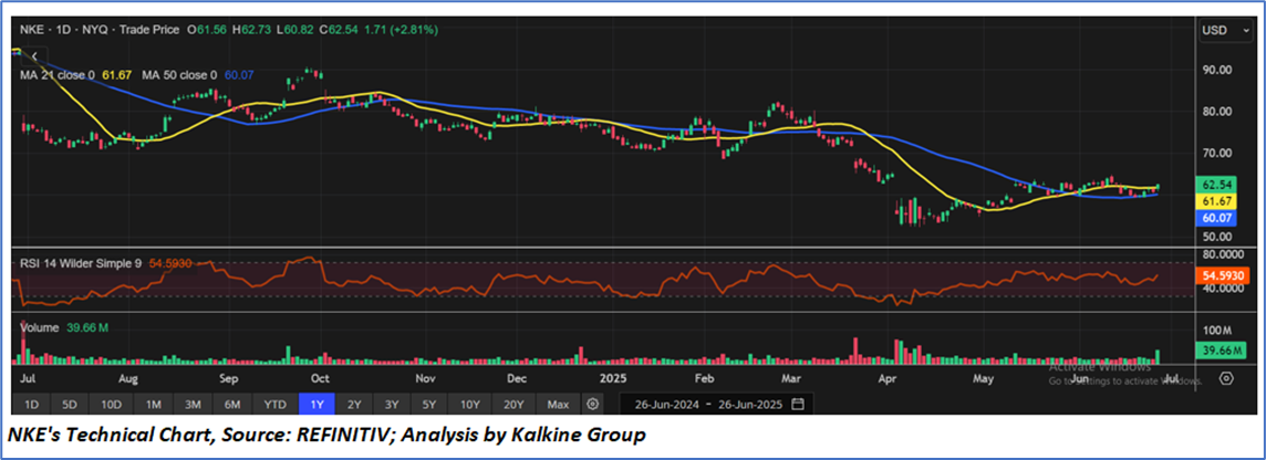 As per the above-mentioned price action, recent key business and financial updates, momentum in the stock over the last month, and technical indicators analysis, a ‘Buy’ rating has been given to NIKE, Inc (NYSE: NKE) at the closing market price of USD 62.54 as of June 26,2025.