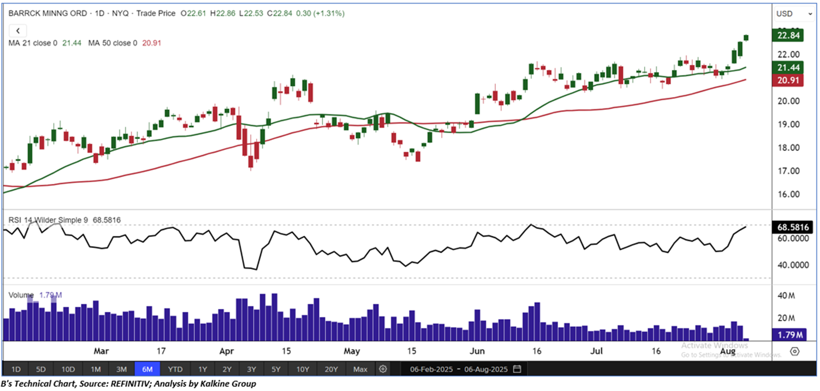 Barrick Mining Corporation (NYSE: B) formerly Barrick Gold Corporation, is a gold and copper producer, which is engaged in the production and sale of gold and copper, as well as related activities, such as exploration and mine development. As per our previous US Dailies Report published on ‘B’ on 2nd June 2025, Kalkine provided a ‘Buy’ stance on the stock at USD 20.23 based on fundamental analysis and the stock price has now moved up by ~12.90% and trading above target 1.