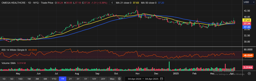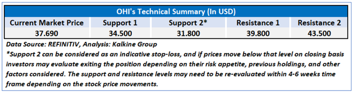 OHI Daily Technical Chart; Source: REFINITIV; Analysis by Kalkine Group