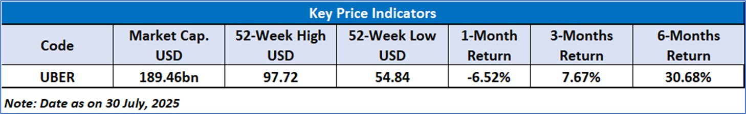 Uber delivered a strong Q1 2025 performance, showcasing profitable growth driven by a 14% increase in revenue and a 35% rise in adjusted EBITDA. Trips surged 18% year-over-year, supported by higher user engagement and retention. The company generated USD 2.3 billion in free cash flow—up 66%—and achieved a significant turnaround in net income to USD 1.8 billion. With solid momentum in both its Mobility and Delivery segments, enhanced operational efficiency, and a positive outlook for Q2, Uber continues to demonstrate financial strength and scalability.