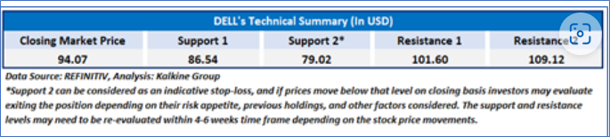 DELL Daily Technical Chart; Source: REFINITIV; Analysis by Kalkine Group
