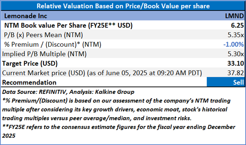 Based on the notional gains, valuation downside and price action stance, a "Sell" recommendation on Lemonade Inc (NYSE: LMND) has been given at the current market price of USD 37.82 as on 05 June 2025 at 09:20 AM PDT.