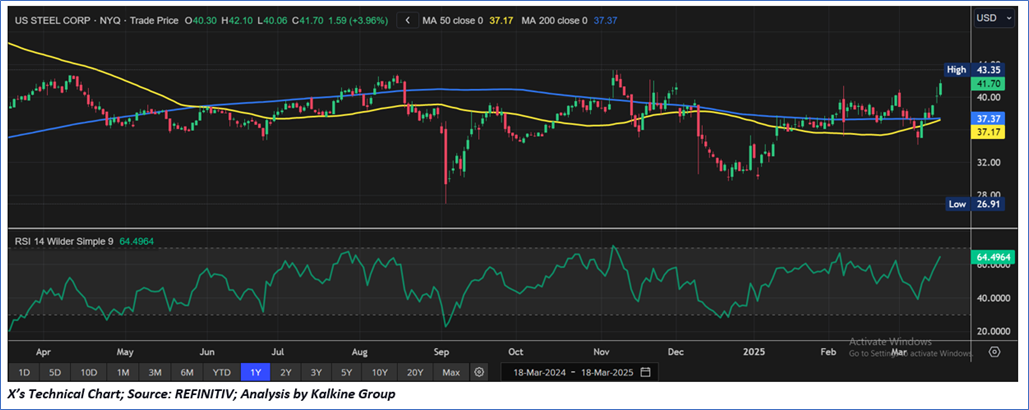 Considering the current trading levels, current macro environment, resistance 1 attainment, and risks associated, a ‘Sell’ rating is assigned to the “X” at the closing market price of USD 41.70, as of March 18, 2025.