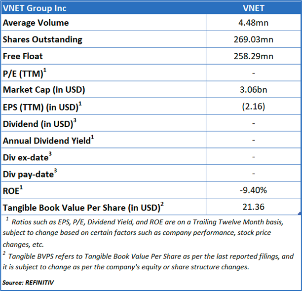 VNET Group Inc (NASDAQ: VNET) is a holding company that primarily provides carrier- and cloud-neutral data center services, offering a broad suite that includes managed hosting, cloud solutions, and virtual private network (VPN) services.