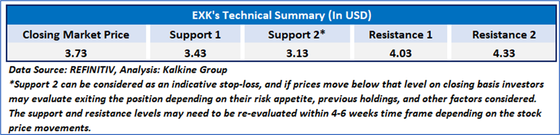 As per our previous US Inflation Report published on ‘EXK’ on 11th April, 2025, Kalkine provided an ‘Buy’ stance on the stock at USD 3.73 based on fundamental analysis and the stock price has now moved by ~ 35.39% since then and is trading above resistance 2.