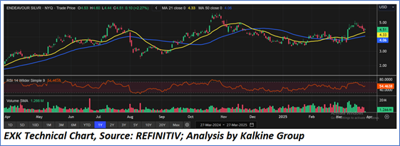 As per the above-mentioned price action, recent key business and financial updates, momentum in the stock over the last month, and technical indicators analysis, a ‘Speculative Buy’ rating has been given to Endeavour Silver Corp (NYSE: EXK) at the current market price of USD 4.51 as of March 27,2025 at 07:35 AM PDT.