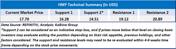 Individuals can evaluate the stock based on the support and resistance levels provided in the report in case of keen interest taking into consideration the risk-reward scenario.