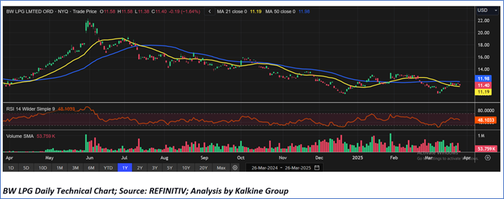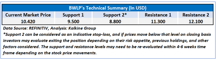 As per our previous US Dividend Income report published on ‘BWLP’ on 12th March 2025, Kalkine provided an ‘Buy’ stance on the stock at USD 10.42 based on fundamental analysis and the stock price has now moved by ~9.40% since then and is hovering around resistance 2.