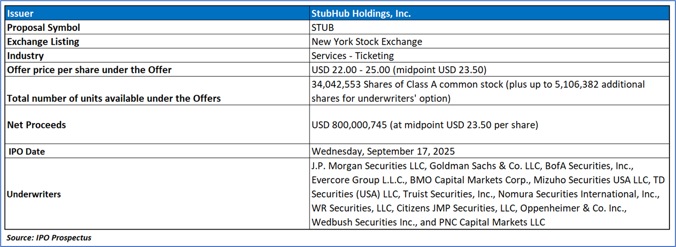 StubHub Holdings, Inc. (STUB) is a leading global online ticket marketplace specializing in connecting buyers and sellers of event tickets, offering a secure, user-friendly platform with advanced fraud detection and customer support. The company distinguishes itself as an innovator in the ticketing industry by providing tailored ticket purchasing options and comprehensive support to enhance buyer-seller interactions, leveraging its extensive network and industry expertise, which has earned recognition such as the "Global Innovation in Ticketing Award" in 2023. Beyond ticketing, StubHub provides consultancy services through its StubHub Solutions division, assisting corporate clients with event management and sponsorship options using the same experienced team, targeting past customers and new referrals from entertainment and sports networks, while actively promoting its services at industry conferences to attract new clientele.