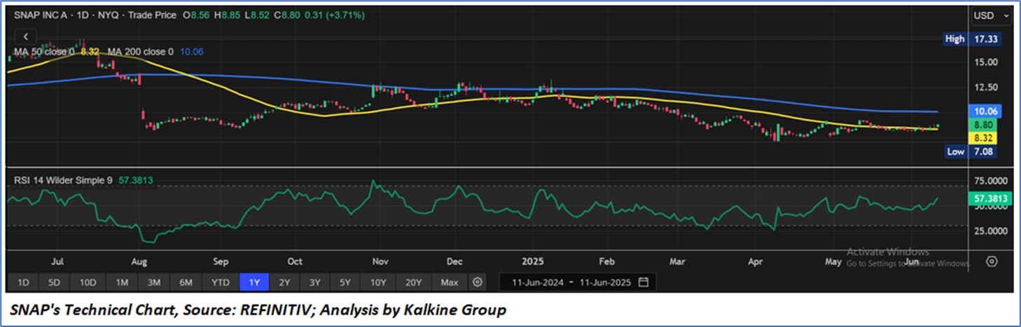 As per the above-mentioned price action, recent key business and financial updates, momentum in the stock over the last month, and technical indicators analysis, a ‘Speculative Buy’ rating has been given Snap Inc. (NYSE: SNAP) at the current price of USD 8.80, as of June 11, 2025, at 07:20 AM PDT.
