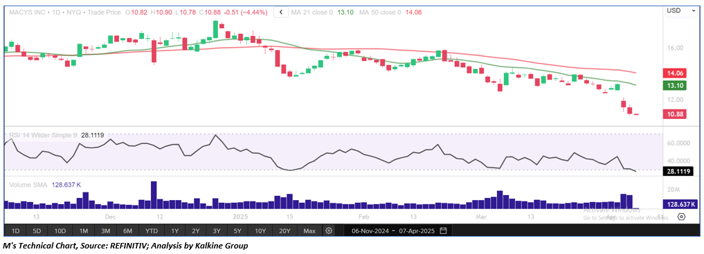 Considering the current trading levels, risks associated, and volatile market conditions on the back of higher interest rates, an ‘Sell’ rating is assigned to the Macy's, Inc. at the current market price of USD 10.88 as of April 7, 2025 (6:35 am PDT).