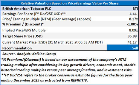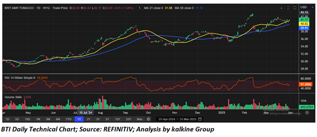 Considering the target level attainments, negative profit margins, rising debt levels, and increasing volatility over global equity market a ‘Sell’ rating is assigned to the ‘BTI’ at the current market price of USD 41.17 as of March 31,2025 at 06:53 AM PDT.