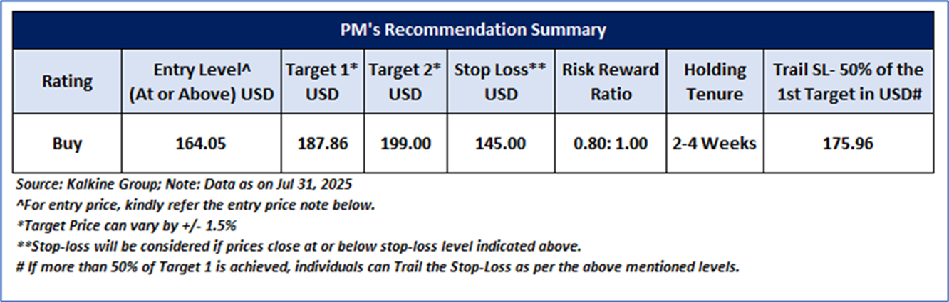 Note 3: Investment decisions should be made depending on an individual's appetite for upside potential, risks, holding duration, and any previous holdings. An 'Exit' from the stock can be considered if the Target Price mentioned as per the Valuation and or the technical levels provided has been achieved and is subject to the factors discussed above.