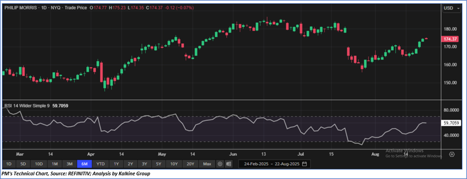 Considering the current trading levels, risks associated, and volatile market conditions on the back of higher interest rates, a ‘Sell’ rating is assigned to the ’PM’ at the current market price of USD 174.37 as of Aug 22, 2025 (6.45 am PDT).