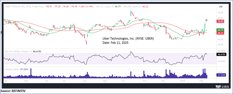 Considering the current trading levels, risks associated, and volatile market conditions on the back of higher interest rates, an ‘Sell’ rating is assigned to the ‘UBER’ at the close price of USD 76.95 as of Feb 11, 2025.