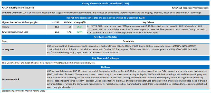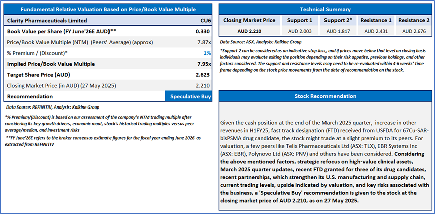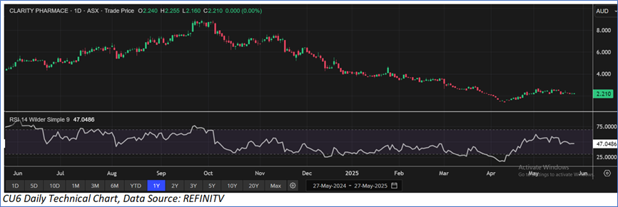 Section 2.0: Clarity Pharmaceuticals Limited (ASX: CU6) (‘Speculative Buy’ at AUD 2.210, Closing Market Price as on 27 May 2025)