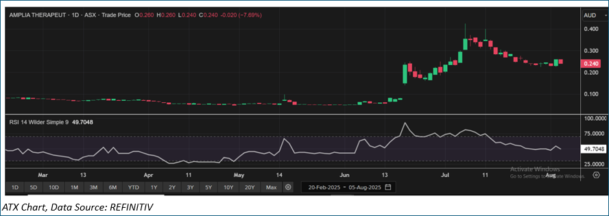 Section 2.0: Amplia Therapeutics Limited (‘Speculative Buy’ at AUD 0.240, closing market price per share as on 5 August 2025)