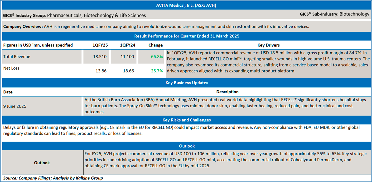 Company Overview: AVITA Medical, Inc. (ASX: AVH) is a regenerative medicine company aiming to revolutionize wound care management and skin restoration with its innovative devices. Its portfolio includes the FDA-approved RECELL® System, designed for treating thermal burn wounds, full-thickness skin defects, and repigmenting stable depigmented vitiligo lesions. Kalkine’s Daily Report covers the Key Financial Metrics, Risks, Outlook, and Technical Analysis along with the Valuation, Target Price, and Recommendation on the stock.