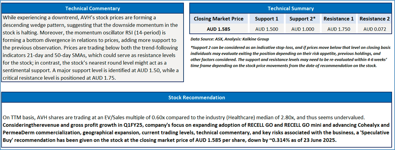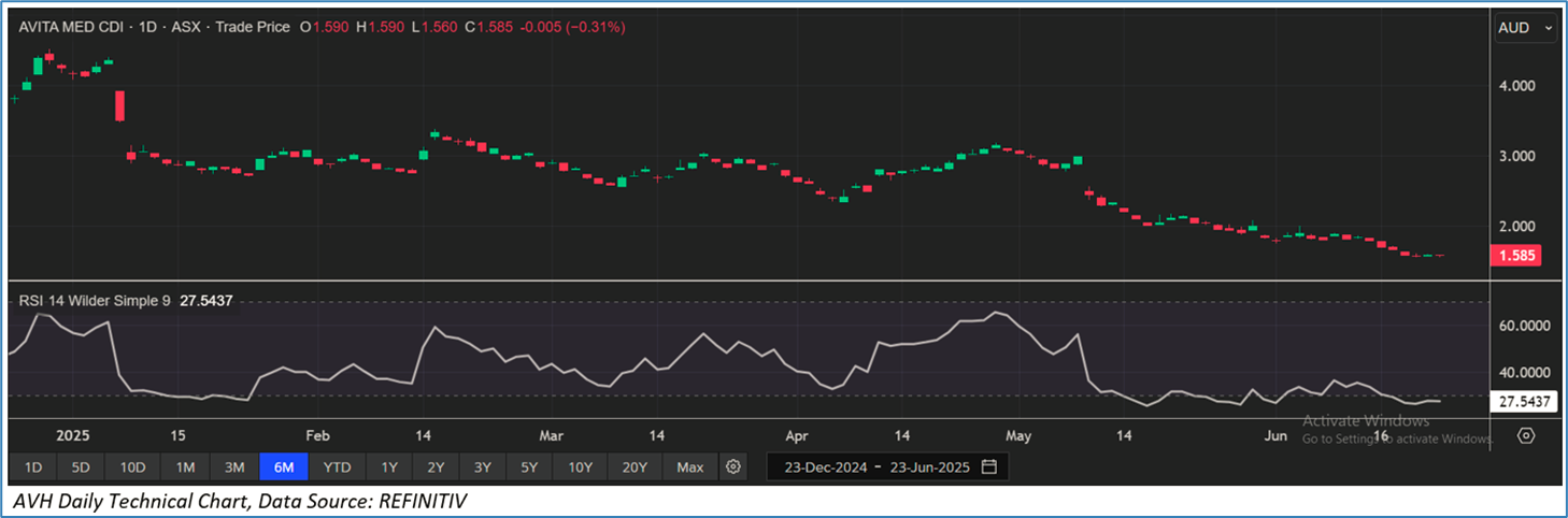Section 2.0: AVITA Medical, Inc (‘Speculative Buy’ at AUD 1.585, closing market price per share as on 23 June 2025)