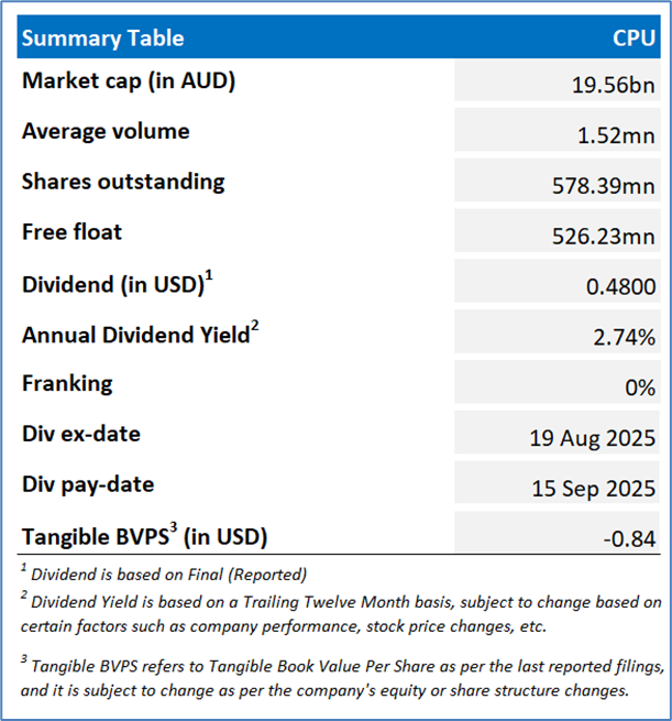 Company Overview: Computershare Limited (ASX: CPU) offers innovative solutions for secure data management, high-volume transaction processing, reconciliation, payments, and stakeholder engagement. The company serves corporations, investors, and institutions worldwide, ensuring transparency, accuracy, and efficiency in managing complex financial and administrative processes. Kalkine’s Daily Report covers the Key Financial Metrics, Risks, Outlook, Technical Analysis along with the Valuation, Target Price, and Recommendation on the stock.