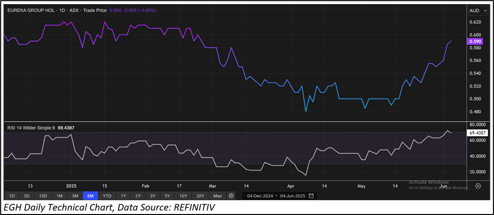 Considering that the stock has surpassed its R1 level, rally in share price movement, current trading level, and risks associated, the share price can face consolidation at the current levels. Hence, a ‘Sell’ recommendation is given on the stock at the current price of AUD 0.59 (as of 4 June 2025, at 10:05 AM AEST).