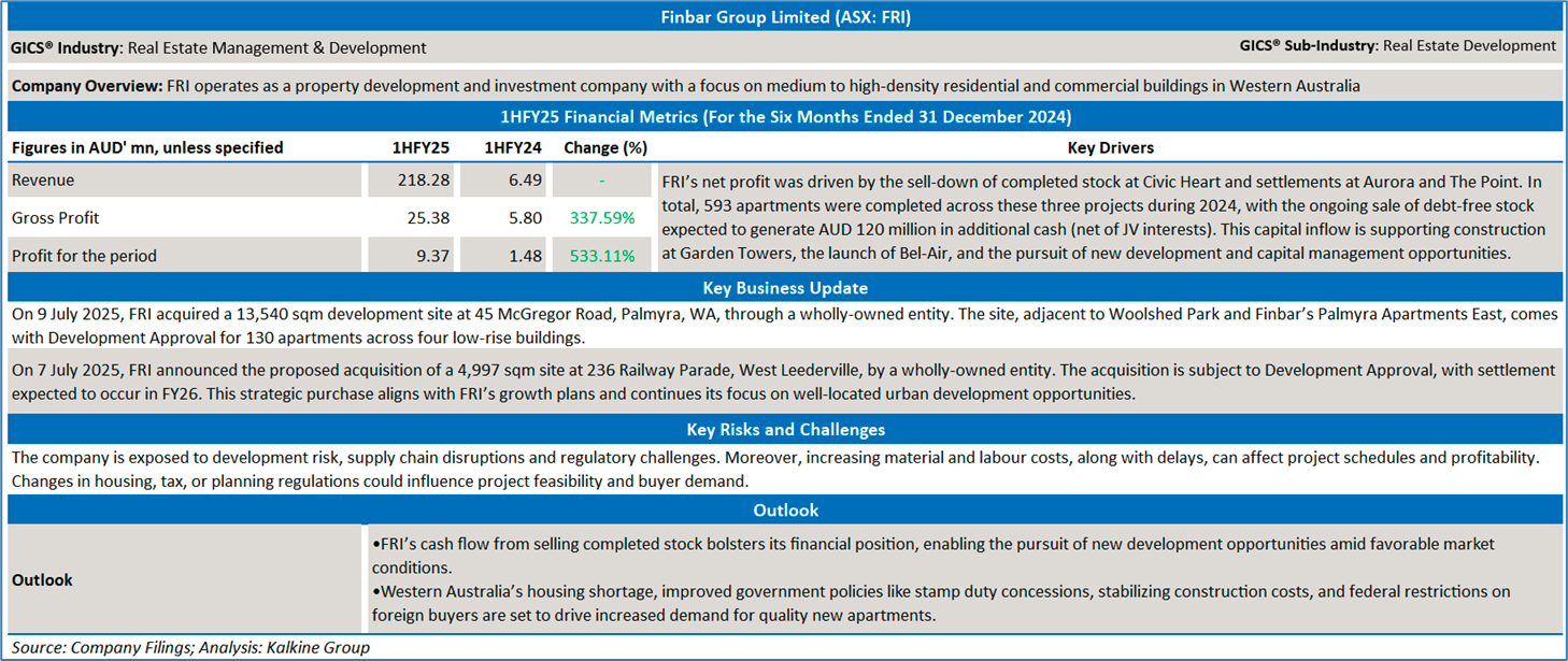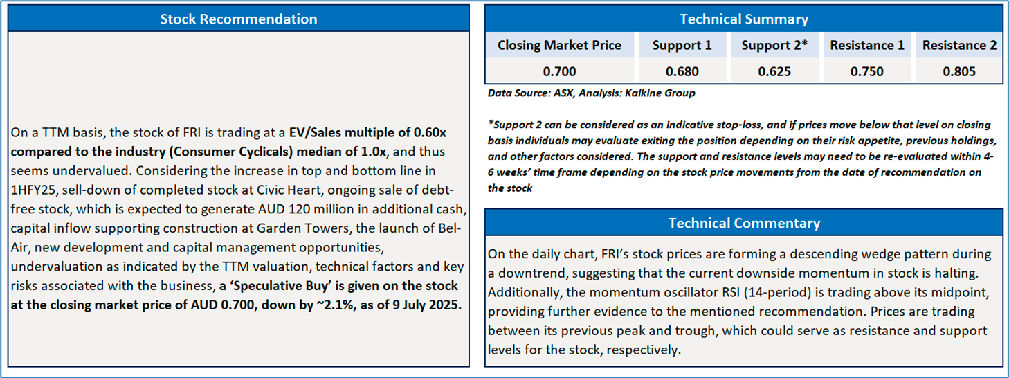 Section 2.0: Finbar Group Limited (‘Speculative Buy’ at AUD 0.700, closing market price per share as on 9 July 2025)