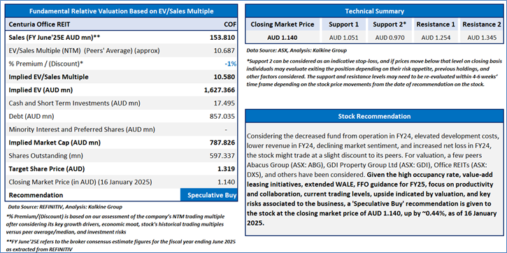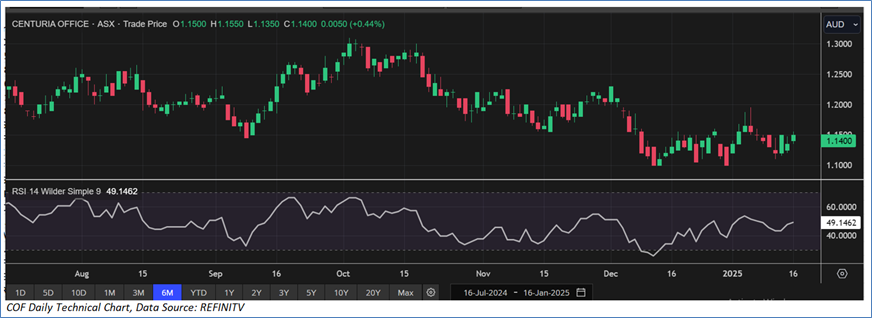 Section 2.0: Centuria Office REIT (‘Speculative Buy’ at AUD 1.140, closing market price per share as on 16 January 2025)