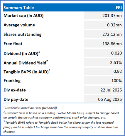 FRI operates as a property development and investment company with a focus on medium to high-density residential and commercial buildings in Western Australia.