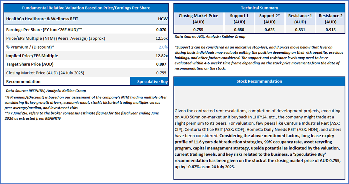 Section 2: HealthCo Healthcare & Wellness REIT (Speculative Buy’ at AUD 0.755, closing market price per share as on 24 July 2025)
