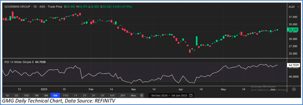 Given its current trading levels, recent rally in the share price, and risks associated, it is prudent to sell the stock at the current levels. Hence, a ‘Sell’ recommendation is given on the stock at the closing market price of AUD 33.230, up ~0.73%, as of 4 June 2025.