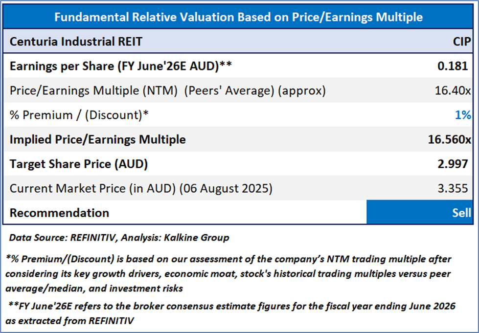 Stock might trade at a slight premium to its peers considering the YoY growth in funds from operations (FFO) in FY25, YoY increase in net operating income (NOI) in FY25 and expected increase in FFO per unit of up to 6% in FY26. For conducting the valuation, peers considered include GPT Group (ASX: GPT), Stockland Corporation Ltd (ASX: SGP), Dexus Industria REIT (ASX: DXI), among others.