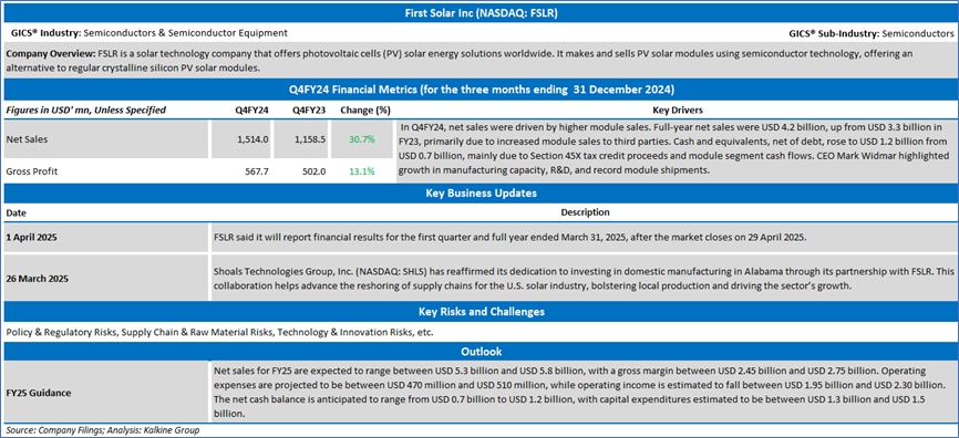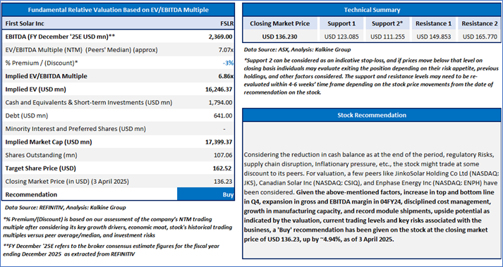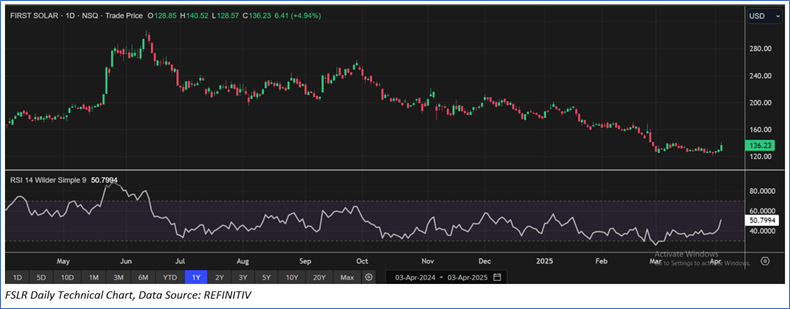 Section 2.0: First Solar Inc (NASDAQ: FSLR) (‘Buy’ at USD 136.23, Closing Market Price as on 3 April 2025)
