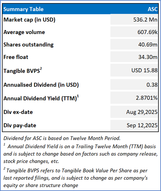 Ardmore Shipping Corporation (NYSE: ASC) is engaged in the ownership and operation of product and chemical tankers in worldwide trade.