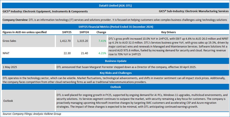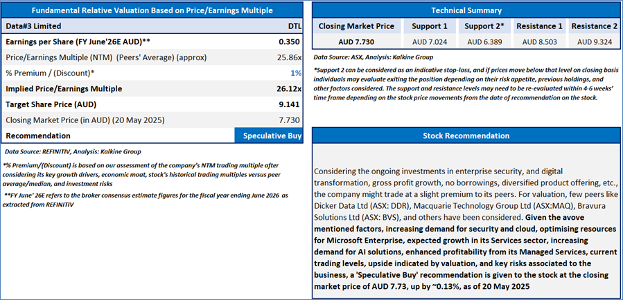 Section 2.0: Data#3 Limited (‘Speculative Buy’ at AUD 7.73, closing market price per share as on 20 May 2025)