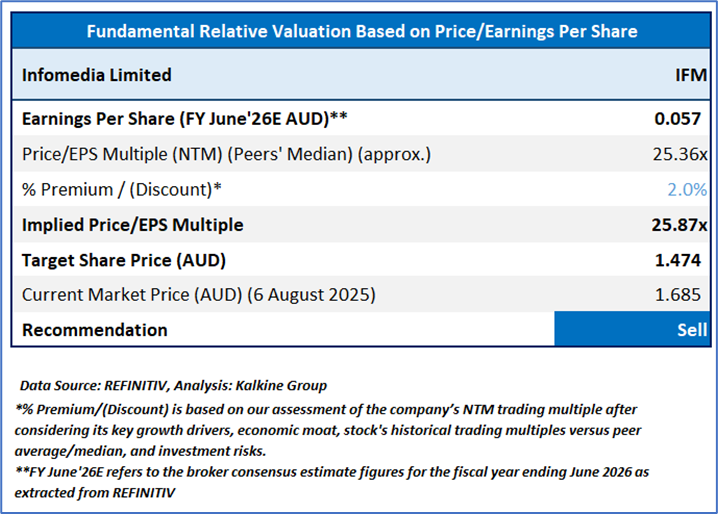 Stock might trade at a slight premium to its peers, considering 99% recurring revenue reported in 1HFY25, higher customer retention and long-term SaaS/DaaS contracts, zero-debt position, and other factors. Peers include Praemium Ltd (ASX: PPS), Readytech Holdings Ltd (ASX: RDY), DUG Technology Ltd (ASX: DUG), and others.