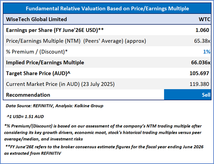Considering that the stock has surpassed its R2 level, macroeconomic uncertainty, share price movement, current trading level, and risks associated, the share price can face consolidation at the current levels. Hence, a ‘Sell’ recommendation is given on the stock at the current market price of AUD 119.38, at 10:35 AM AEST, as of 23 July 2025.
