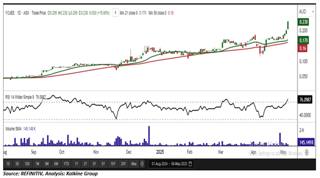 As per the previous recommendation on YOJ 07 March 2025, a ‘Speculative Buy’ rating was given on the stock at AUD 0.170, and noted below are the details of support and resistance provided in the previous report: