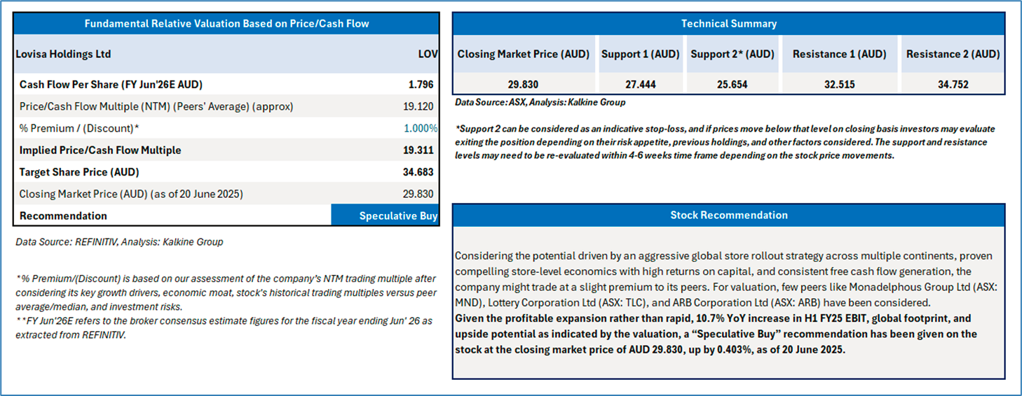 Section 2.0: Lovisa Holdings Ltd (ASX: LOV) - (‘Speculative Buy at AUD 29.830, closing market price per share as on 20 June 2025)