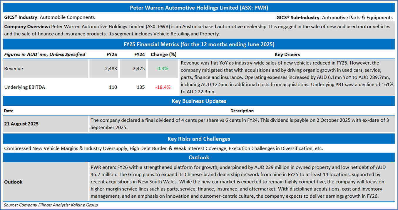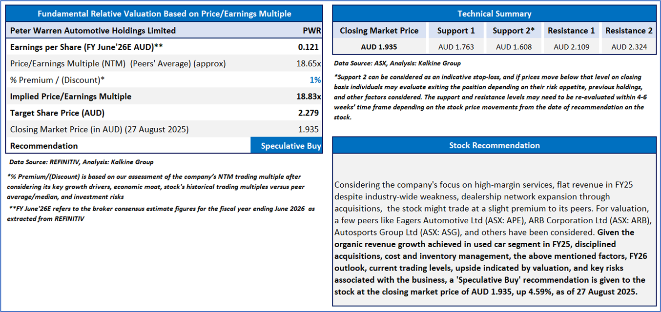 Section 2.0: Peter Warren Automotive Holdings Limited (ASX: PWR) (‘Speculative Buy’ at AUD 1.935, Closing Market Price as on 27 August 2025)