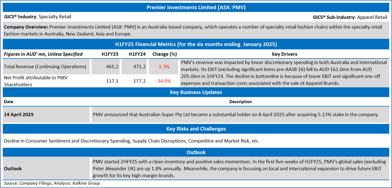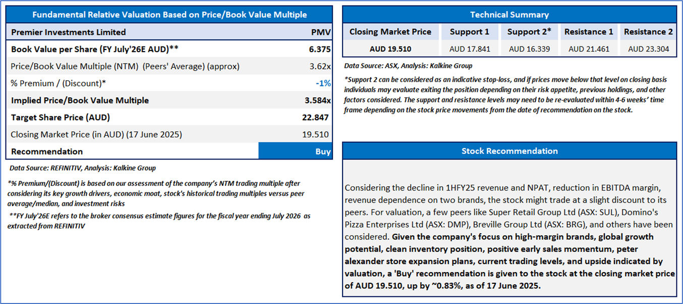 Section 2.0: Premier Investments Limited (ASX: PMV) (‘Buy’ at AUD 19.510, Closing Market Price as on 17 June 2025)