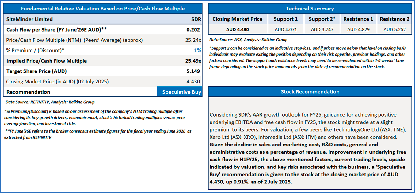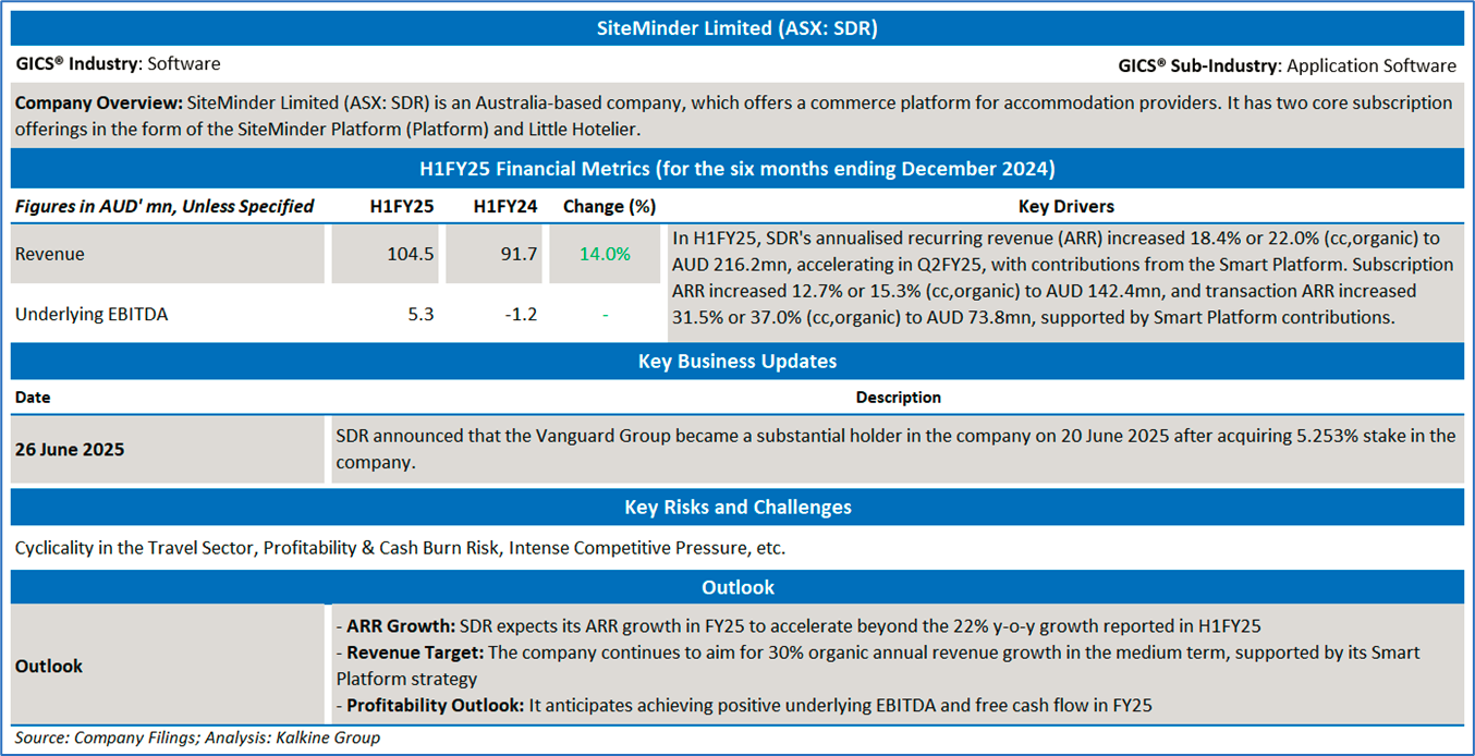 Section 2.0: SiteMinder Limited (ASX: SDR) (‘Speculative Buy’ at AUD 4.430, Closing Market Price as on 2 July 2025)