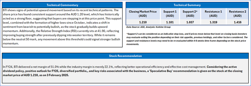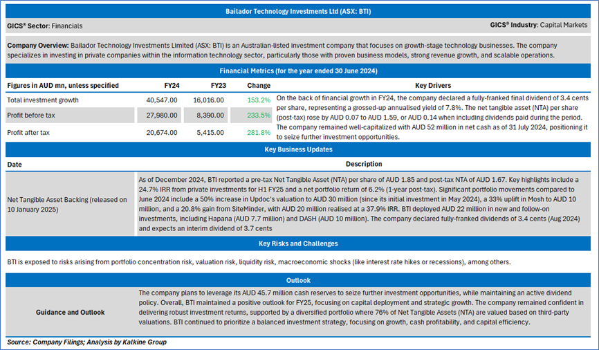 Section 2.0: Bailador Technology Investments Ltd (ASX: BTI) (‘Speculative Buy’ at AUD 1.210, Closing Market Price as on 3 February 2025)