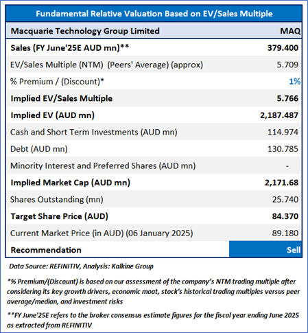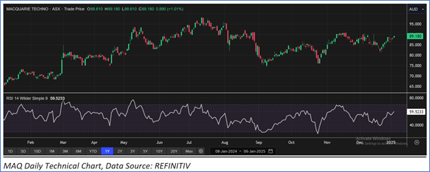 Considering that the stock is approaching overbought zone, market uncertainties, and risks associated, the share price can witness some correction at the current levels before moving higher. Hence, a ‘Sell’ recommendation is given on the stock at the current market price of AUD 89.18, as of 6 January 2025 at 12:55 PM, AEDT.