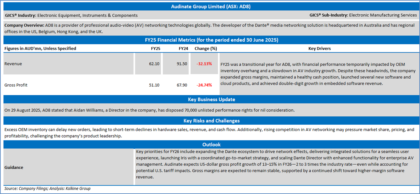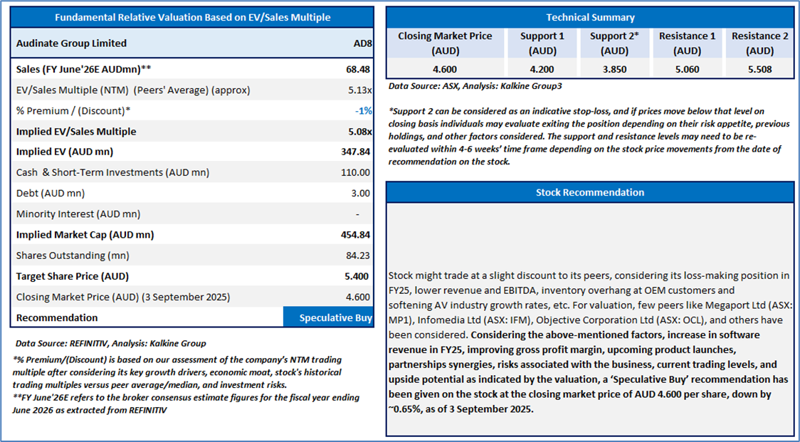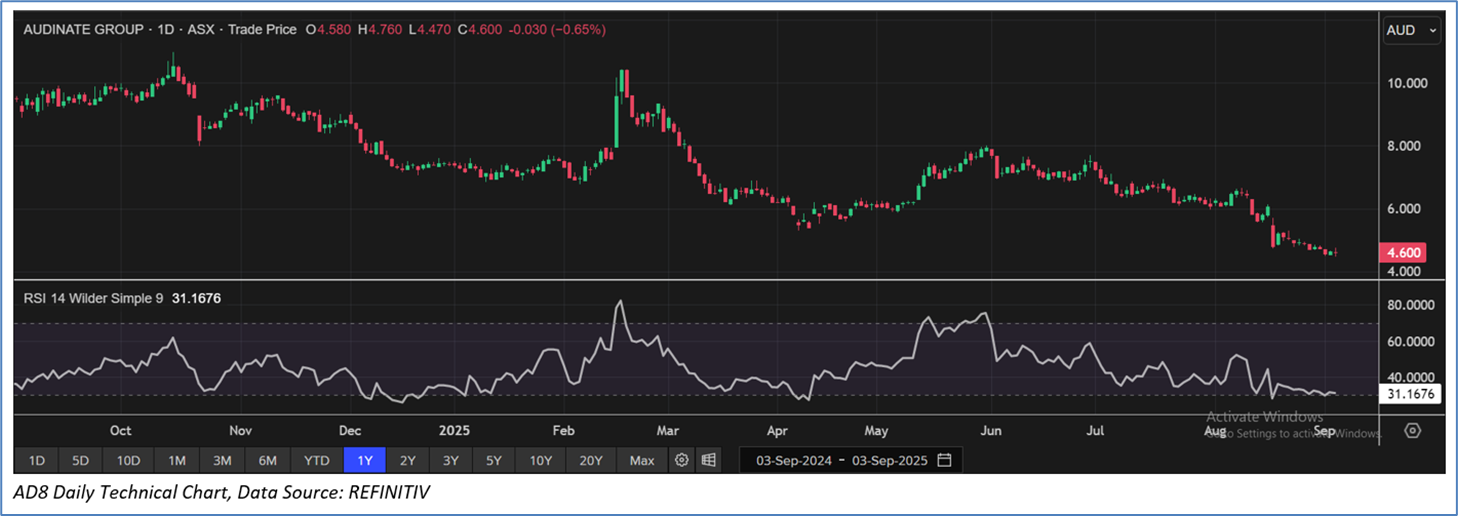 Section 2.0: Audinate Group Limited (‘Speculative Buy’ at AUD 4.600, closing market price per share as on 3 September 2025)