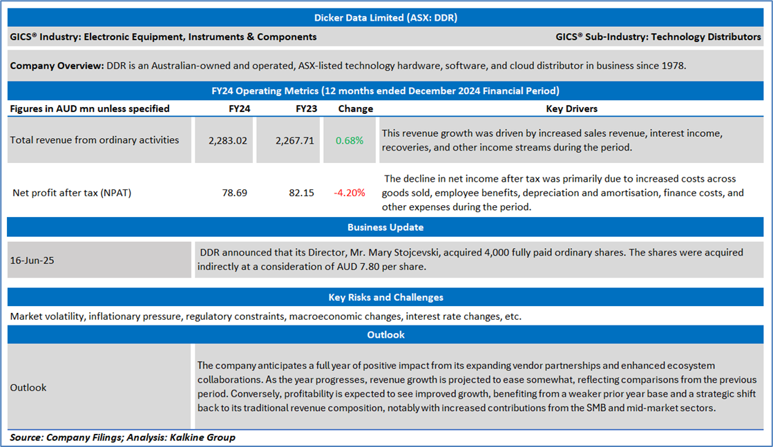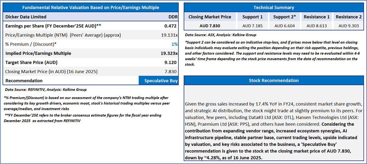 Section 2.0: Dicker Data Limited (‘Speculative Buy’ at AUD 7.830, closing market price per share as on 16 June 2025)