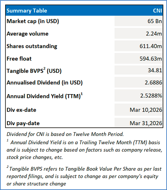 Canadian National Railway Company (NYSE: CNI) is a transportation and logistics company. The Company's services include rail, intermodal, trucking, and supply chain services.