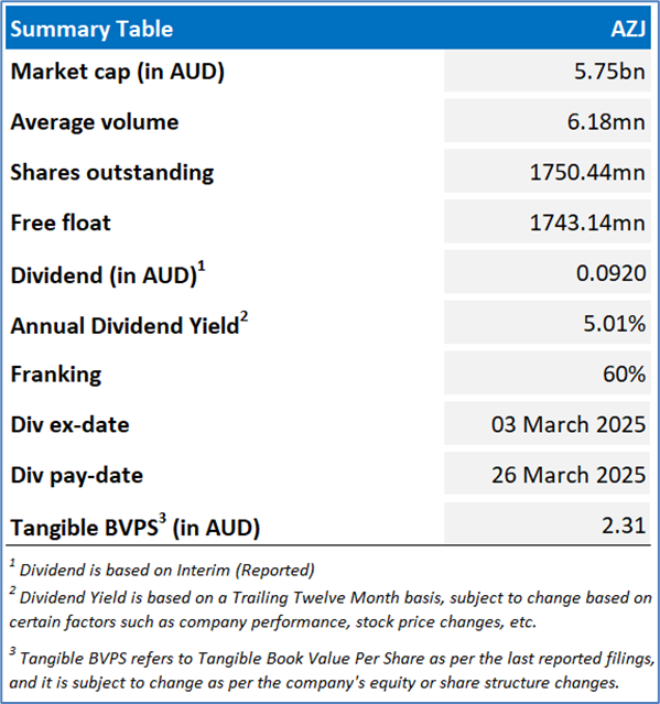 The stock has witnessed a dip of ~4.11% in last nine months, and over the last one year, it has decreased by ~3.26%. The stock has a 52-week low and 52-week high of AUD 2.870 and AUD 3.580, respectively and is currently trading above the 52-week high-low average. AZJ was last covered in a report dated ’20 Jan 2025’.