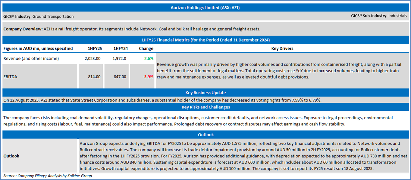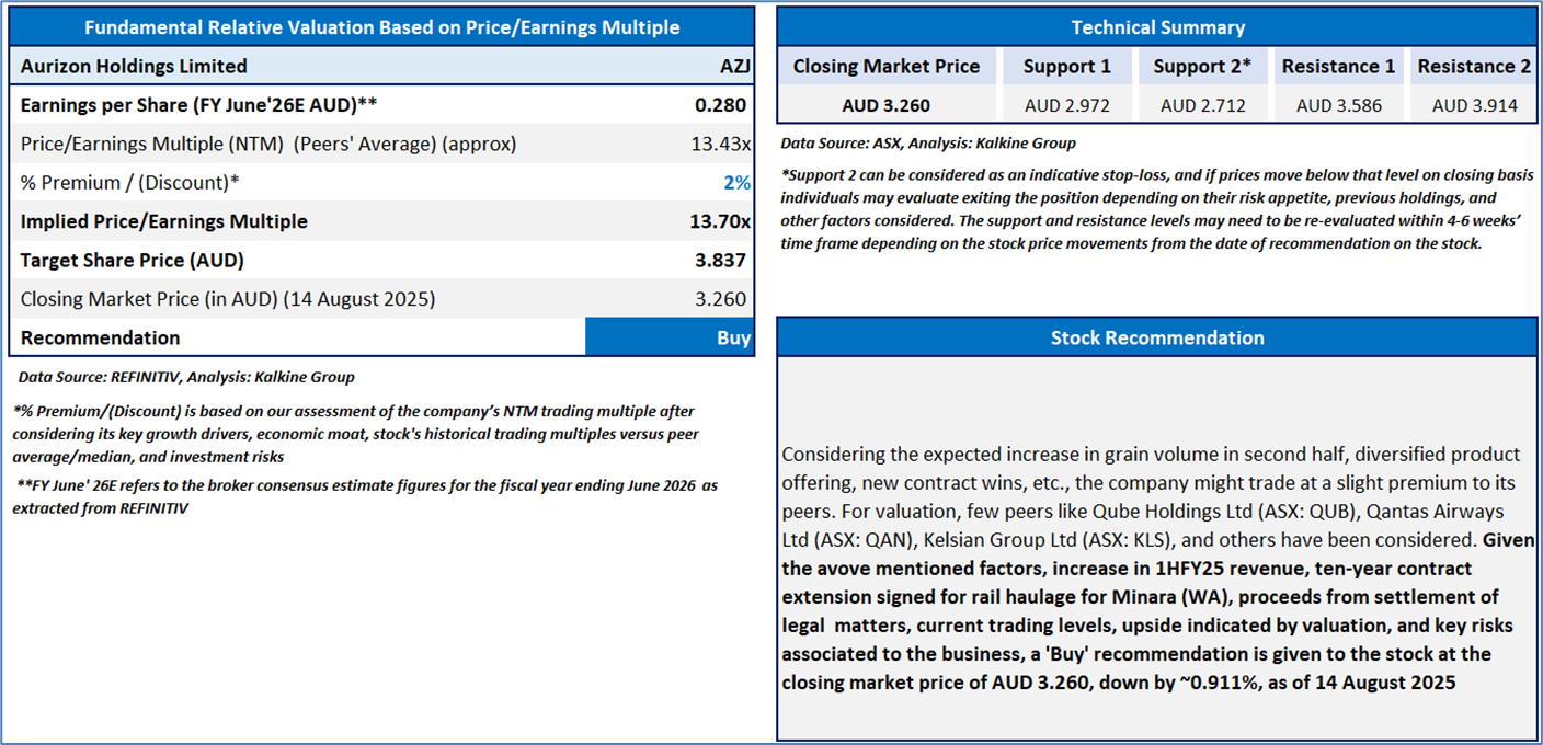 Section 2.0: Aurizon Holdings Limited (‘Buy’ at AUD 3.260, closing market price per share as on 14 August 2025)