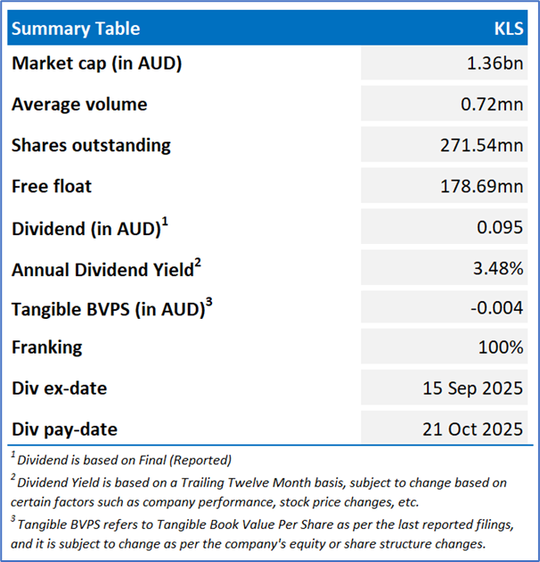 is an Australia-based integrated operator and multi-model transport provider. KLS’ business segments include Marine & Tourism, Australian Bus, and International Bus.
