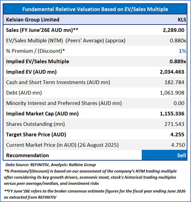 Considering that the stock has surpassed it R2 level, macroeconomic uncertainty, share price movement, current trading level, and risks associated, the share price can face consolidation at the current levels. Hence, a ‘Sell’ recommendation is given on the stock at the current market price of AUD 4.750, at 12:52 PM AEST, as of 26 August 2025.